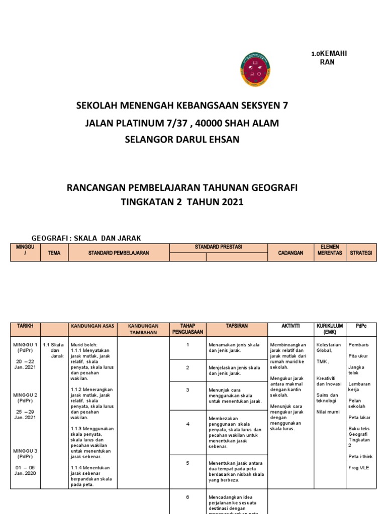 Rpt 2021 Geografi Tingkatan 2 Kssm Penjajaran Pdf